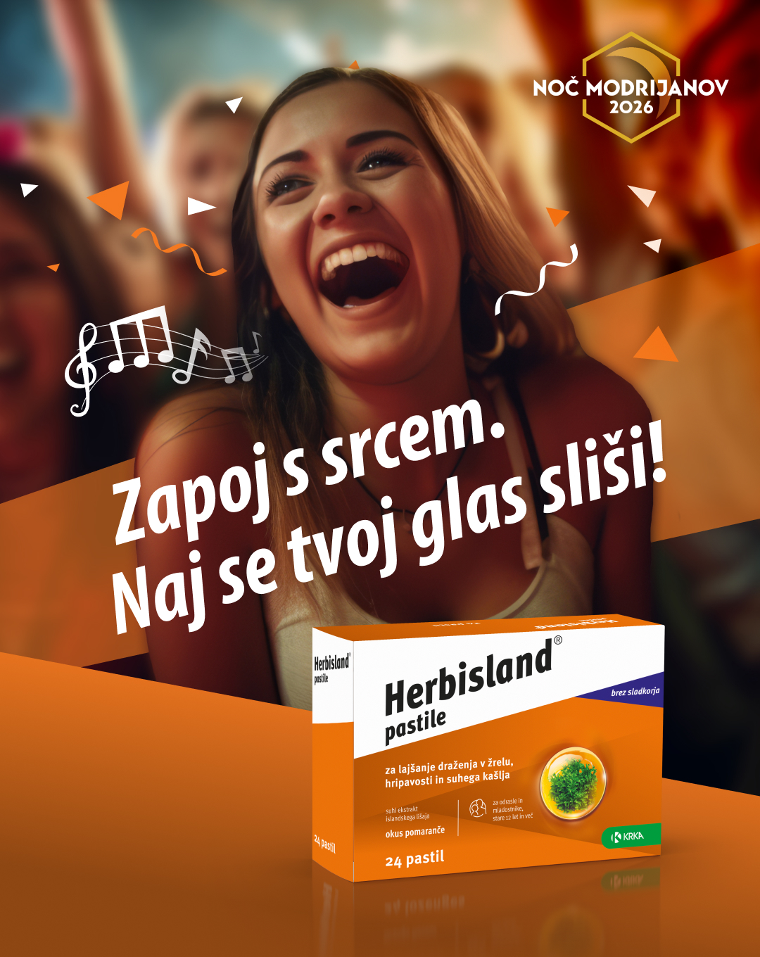 Ko zaslišiš dobro glasbo, želiš zapeti na ves glas. A hripavost, suho grlo in draženje na kašelj lahko v trenutku pokvarijo zabavo. Še dobro, da so tu pastile Herbisland, ki pomirijo razdraženo grlo, navlažijo sluznico in poskrbijo, da se tvoj glas sliši.