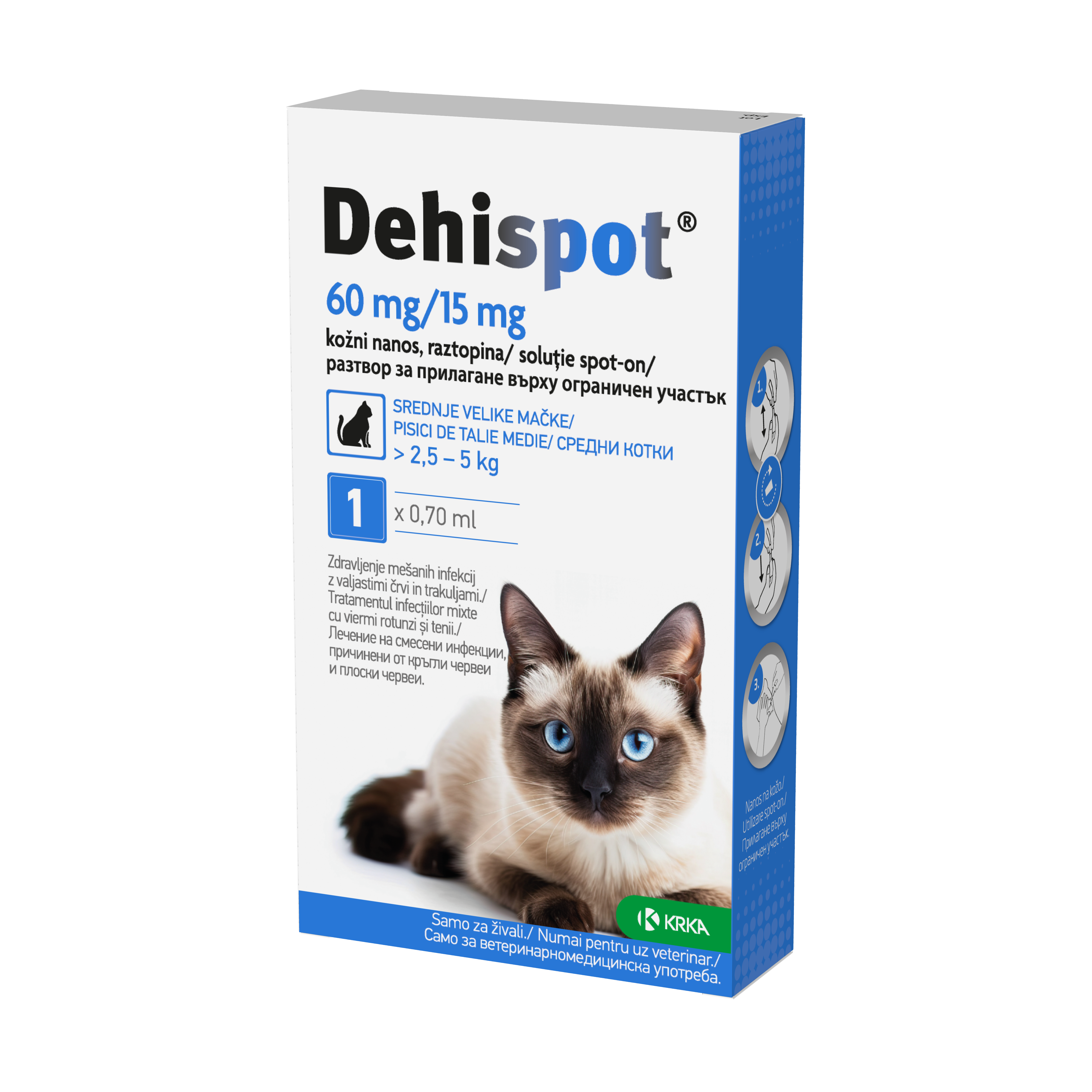 Dehispot, 96 mg/ 24 mg, kožni nanos, raztopina za velike mačke od 5-8 kg